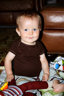 Beckham has gotten even more attached to me in the last month. He's getting the "stranger danger" thing, but I think it's mostly an act. If he sees or hears me he puts on a big show until I am the one holding him. If I am not around he is content as can be. Manipulating me already? It's working. I am happy holding him all day long.